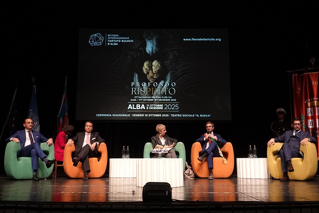 Il tradizionale talk che inaugura la Fiera è stato guidato da Fernanda Roggero, giornalista de Il Sole 24 Ore. A confrontarsi Alberto Cirio, presidente Regione Piemonte, Alberto Gatto, Sindaco di Alba, Axel Iberti, presidente Ente Fiera di Alba, e Alex Mejia, Direttore della Divisione Persone e Sviluppo Sociale di Unitar.