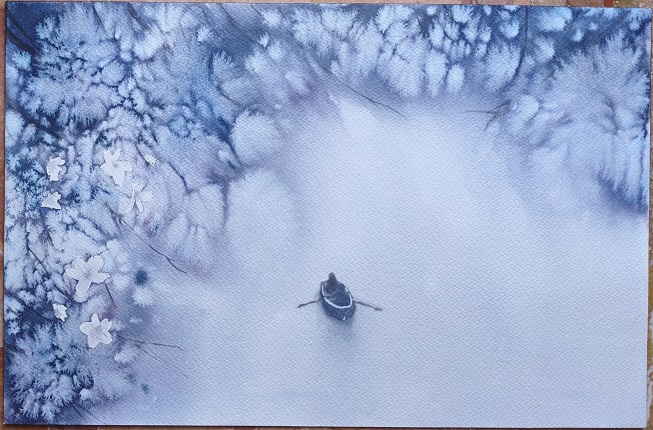 Il filo conduttore è rappresentato dal tema dell’acqua che l’artista esplora da prospettive diverse e con usi differenti del colore, per evocare i temi del viaggio, del mondo emozionale e dell’inconscio individuale. I lavori sono realizzati ad acquerello, carboncino, e tecnica mista.