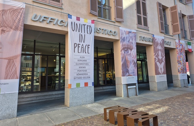 La città di Böblingen ha ideato una mostra itinerante sul tema della Pace “United in Peace” coinvolgendo le sue città gemelle, tra cui Alba.